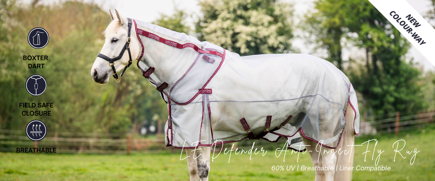 Discover the LE Defender Anti-Itch Rug in a new colour, Defender Fly Boots with an improved fit, the Outback Fly Mask and new Outback Fly Mask for Riding, the LE Breeze Sheet in its latest shade, and our LE Clothing range — all designed to perform, protect, and keep both horse and rider comfortable.