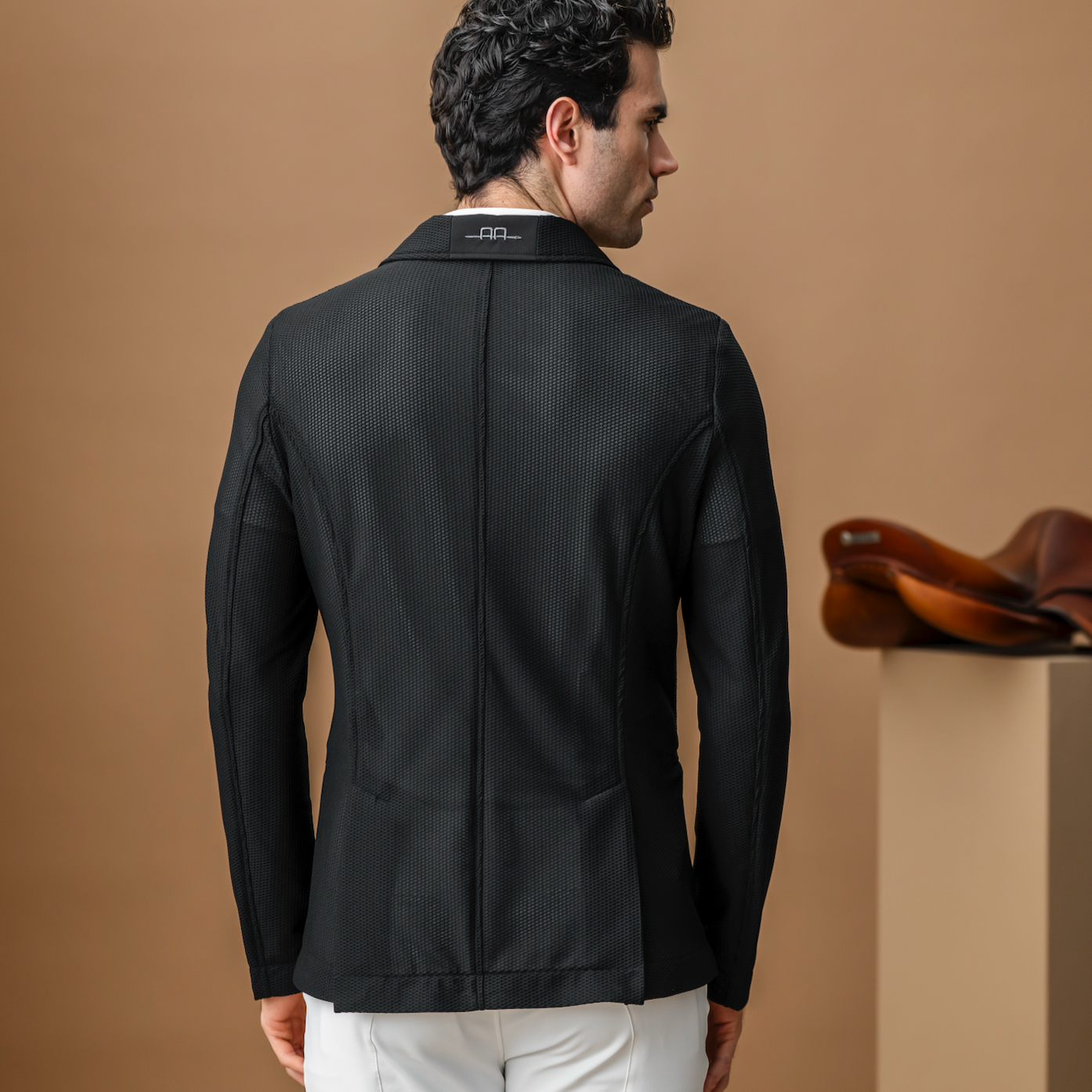 Engineered for peak performance, the men's Alessandro Albanese® MotionLite™ Jacket offers exceptional breathability and comfort in the ring. Constructed from high-performance stretch mesh, this award-winning show coat is ultra-lightweight and unlined to maximise airflow. The tailored athletic fit ensures full range of motion while maintaining a sharp, professional look—keeping you cool, composed, and competition-ready. Functional features meet sleek design that meets the demands of the sport.