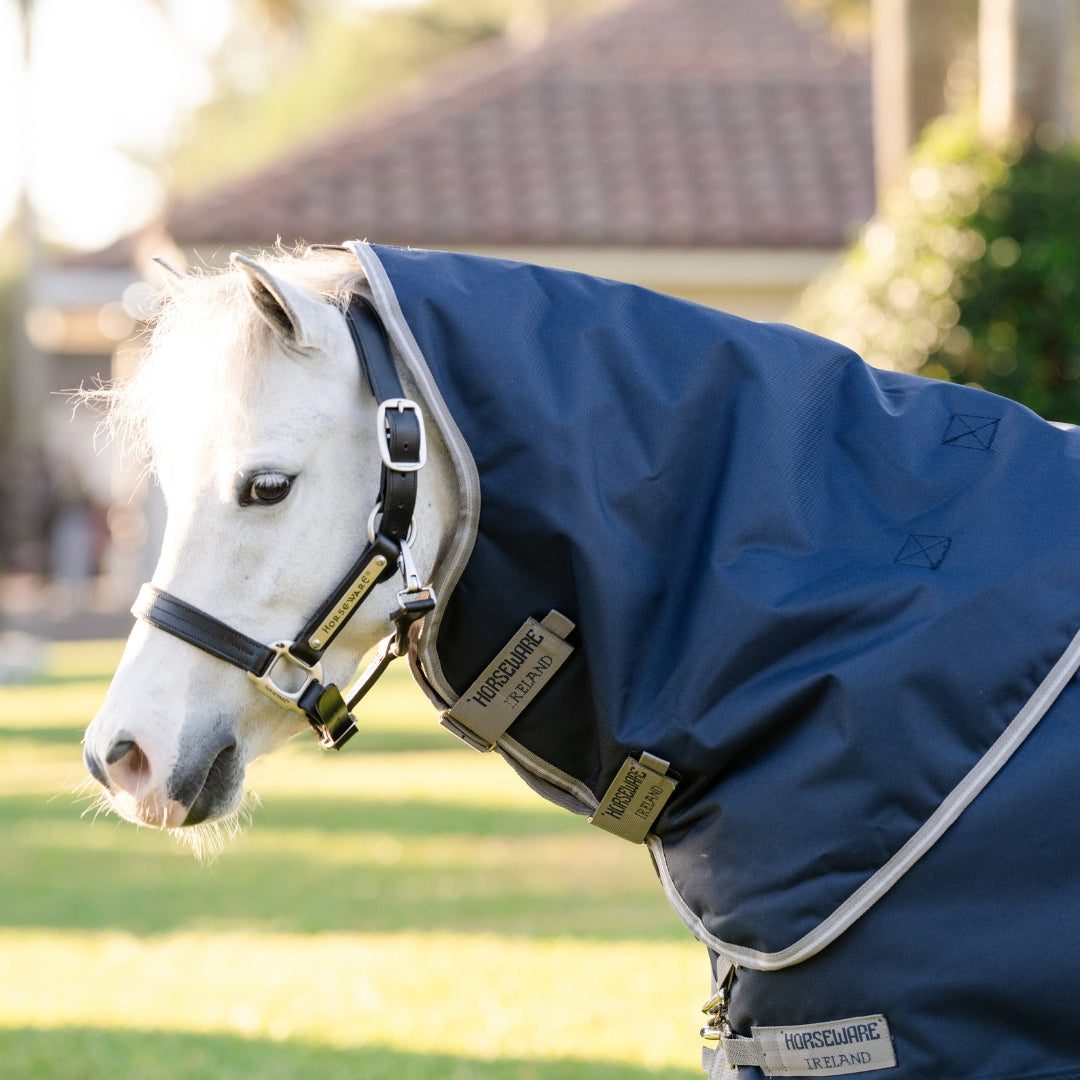 The Amigo 1200D Plus Pony turnout 250g is a tough waterproof and breathable turnout rug which will keep your pony dry, warm, and comfortable. 250g fill makes it ideal for use in the colder/wetter weather, either on its own or with Horseware Pony Liners in 100g or 200g fill for additional warmth.