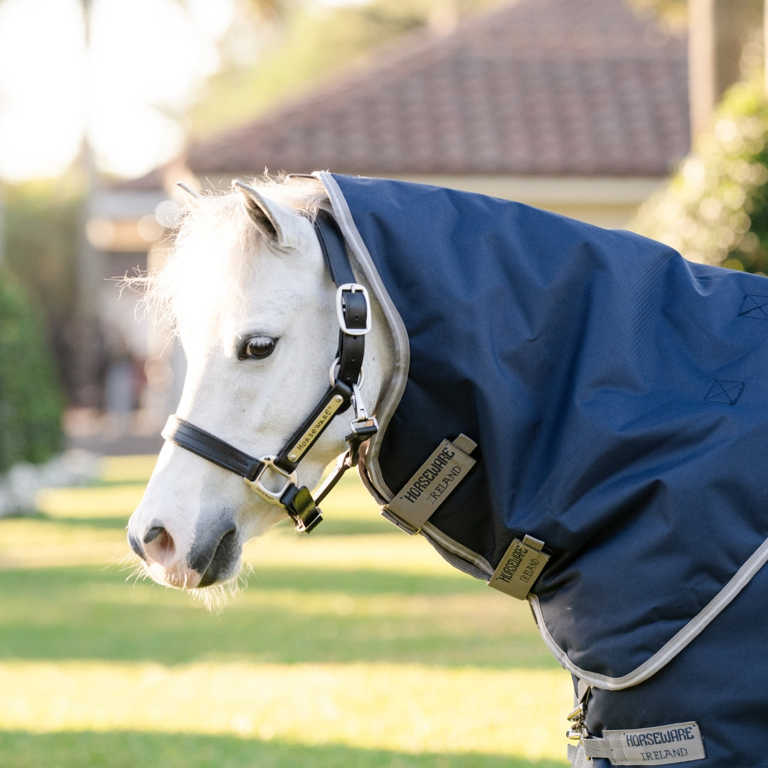 Made from a strong durable waterproof and breathable 1200d polyester, with anti-bacterial lining (which is also shine-enhancing!). 50g fill in this style so you can use it most of the year round in light to heavy rain. If it gets cold, you can get a Pony Liner to clip in, choose from 100g or 200g fill.