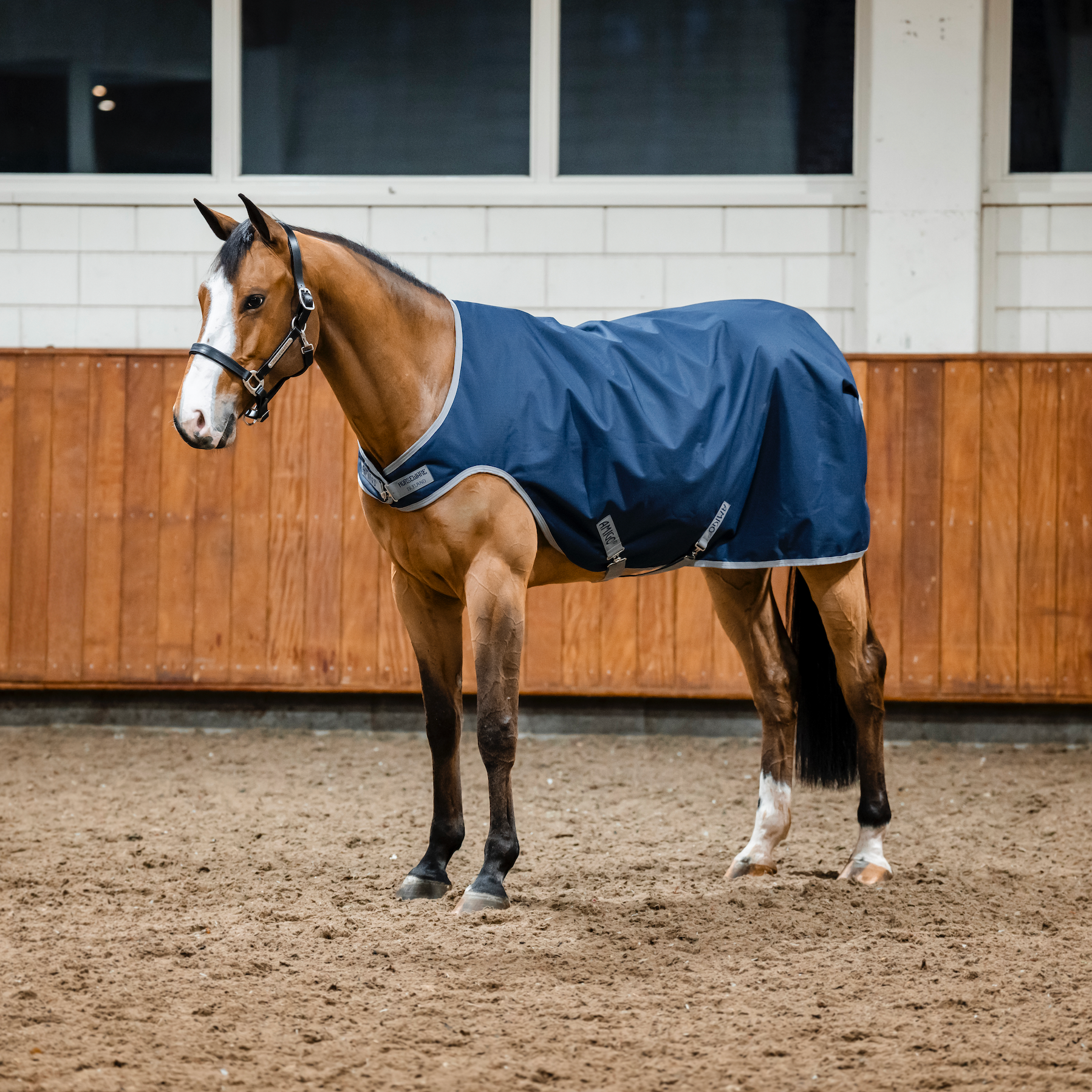 Constructed from durable and waterproof 900D ripstop polyester with shine enhancing lining. Includes single straight front-closure, cross surcingles and walker cut leg arches.
