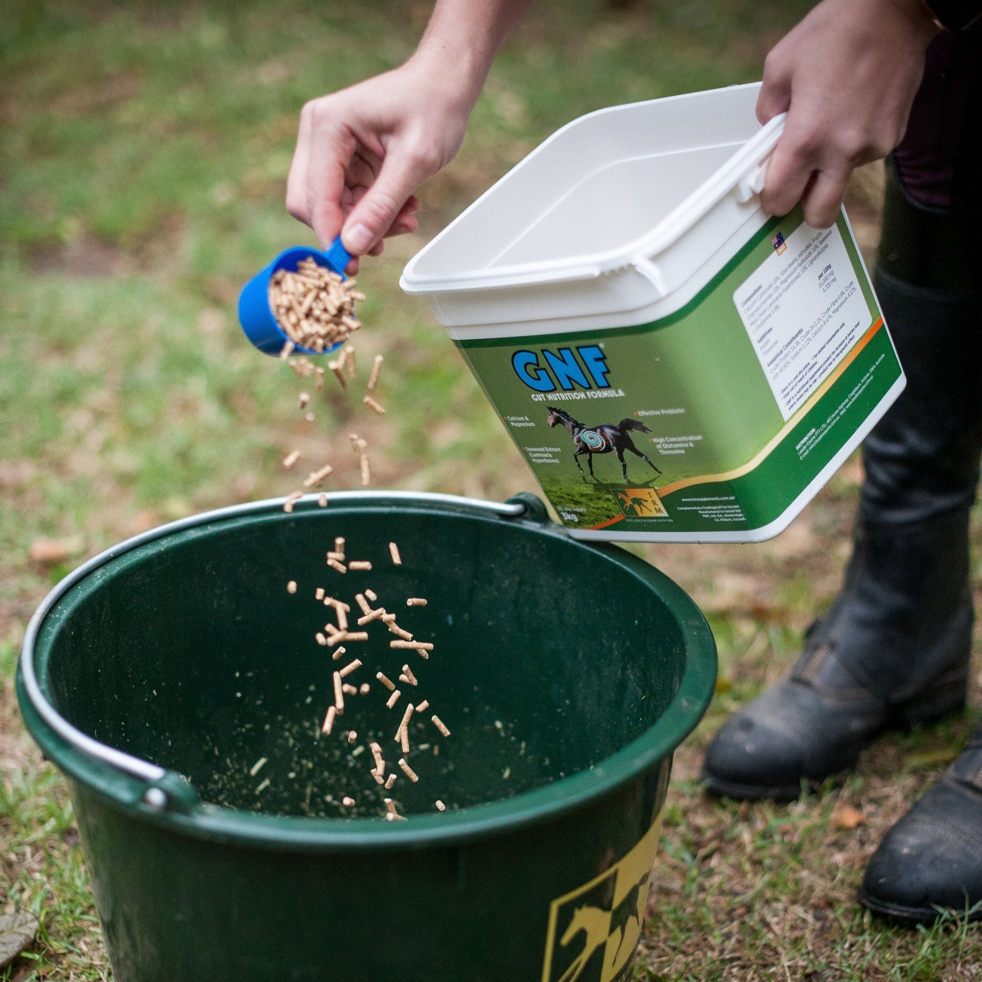 GNF is a combination of minerals, amino acids and a prebiotic which have a role in general metabolism and are required for normal feed conversion. It should be used to complement the feeding diet of horses.  Formulated for use on horses that need help with fore and hind gut health.