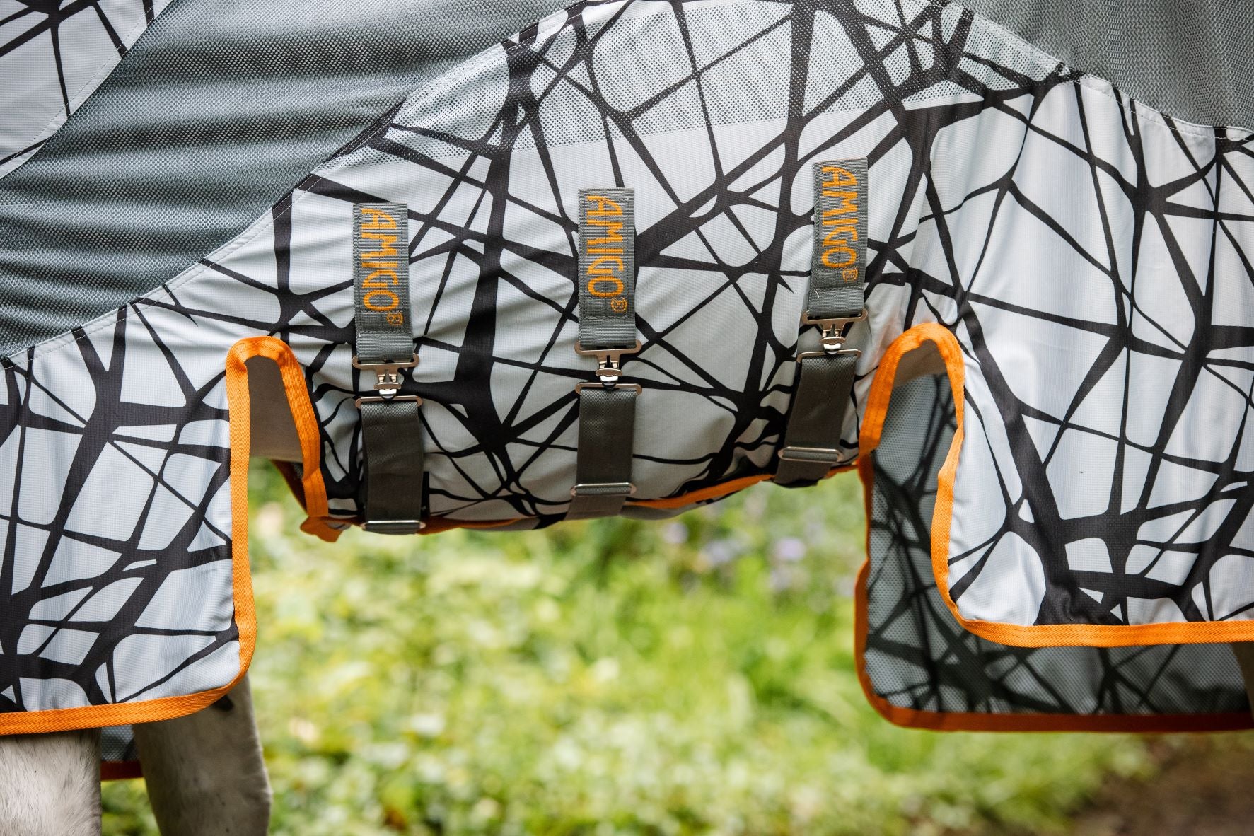 Combines the features of a lightweight turnout & fly sheet into one. The monochromatic pattern may be a simple way to protect horses by helping to deter flies from landing on their body.