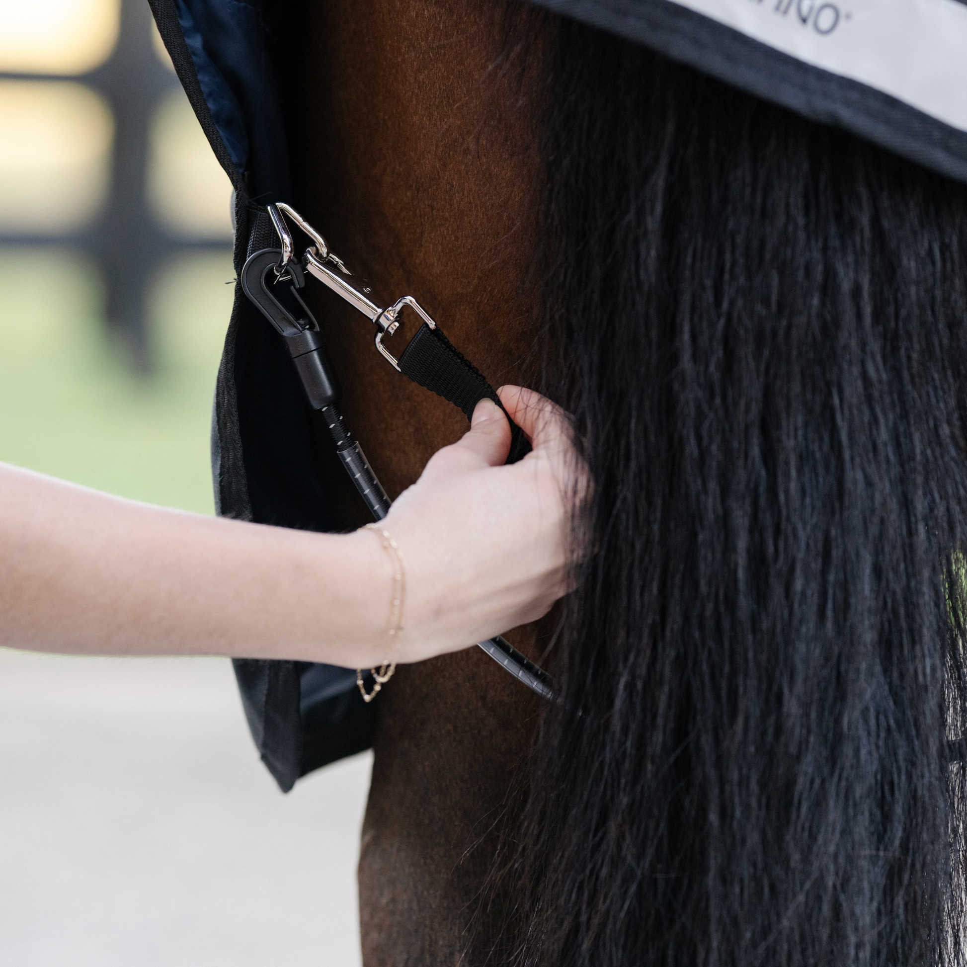 Horseware Elasticated Leg Straps offer an additional way to secure your horse's rug in place—ideal for added comfort and peace of mind. Crafted from durable flat elastic and fully adjustable in length, these straps move naturally with your horse. Featuring a loop end and sturdy clip closure, they attach quickly and easily to the leg strap fittings on any compatible Horseware rug or sheet.