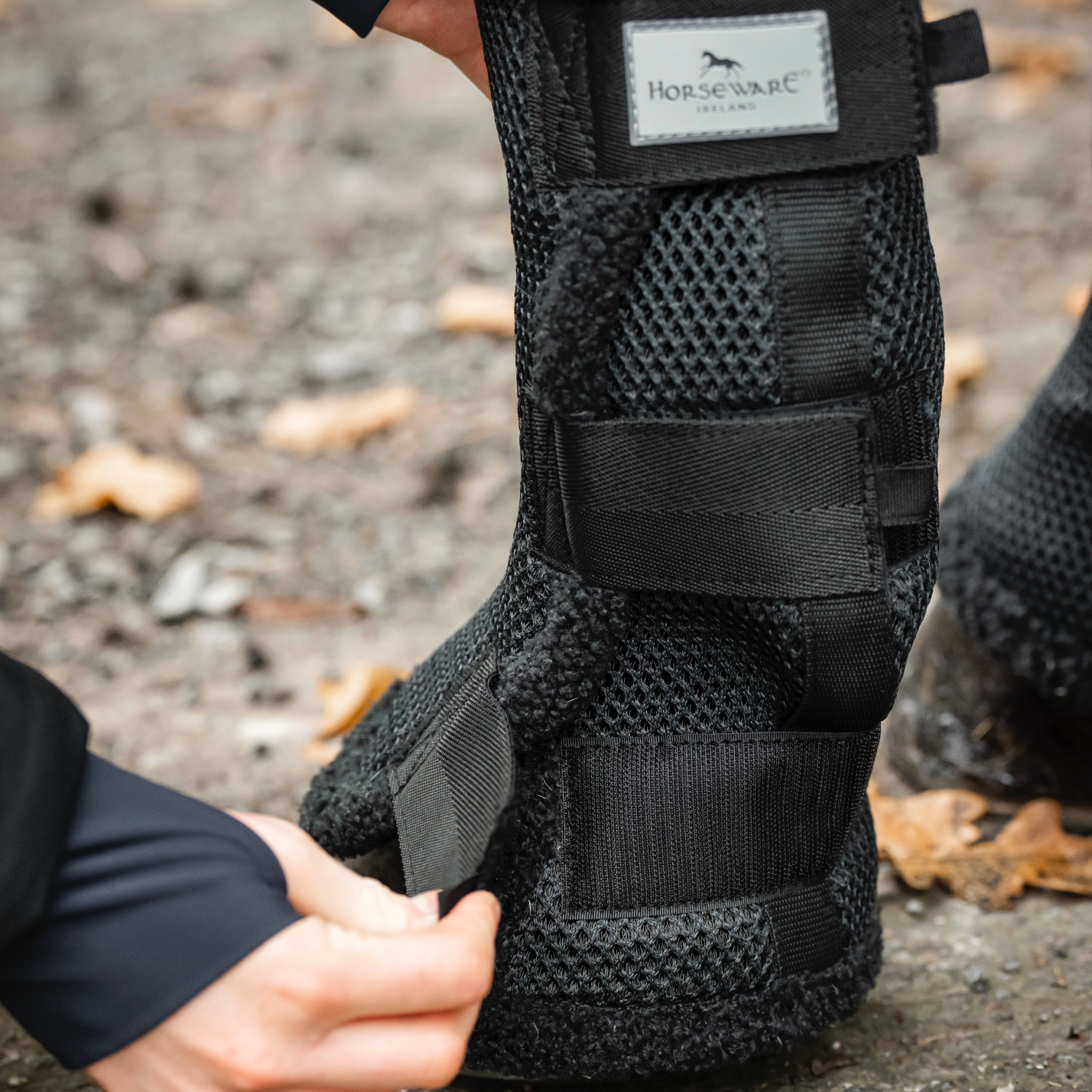 The Horseware® Show-Ready Wraps are made from a breathable 3D airmesh fabric with super soft deeply cushioned jersey inner to keep your horse’s legs clean and protected before a show.