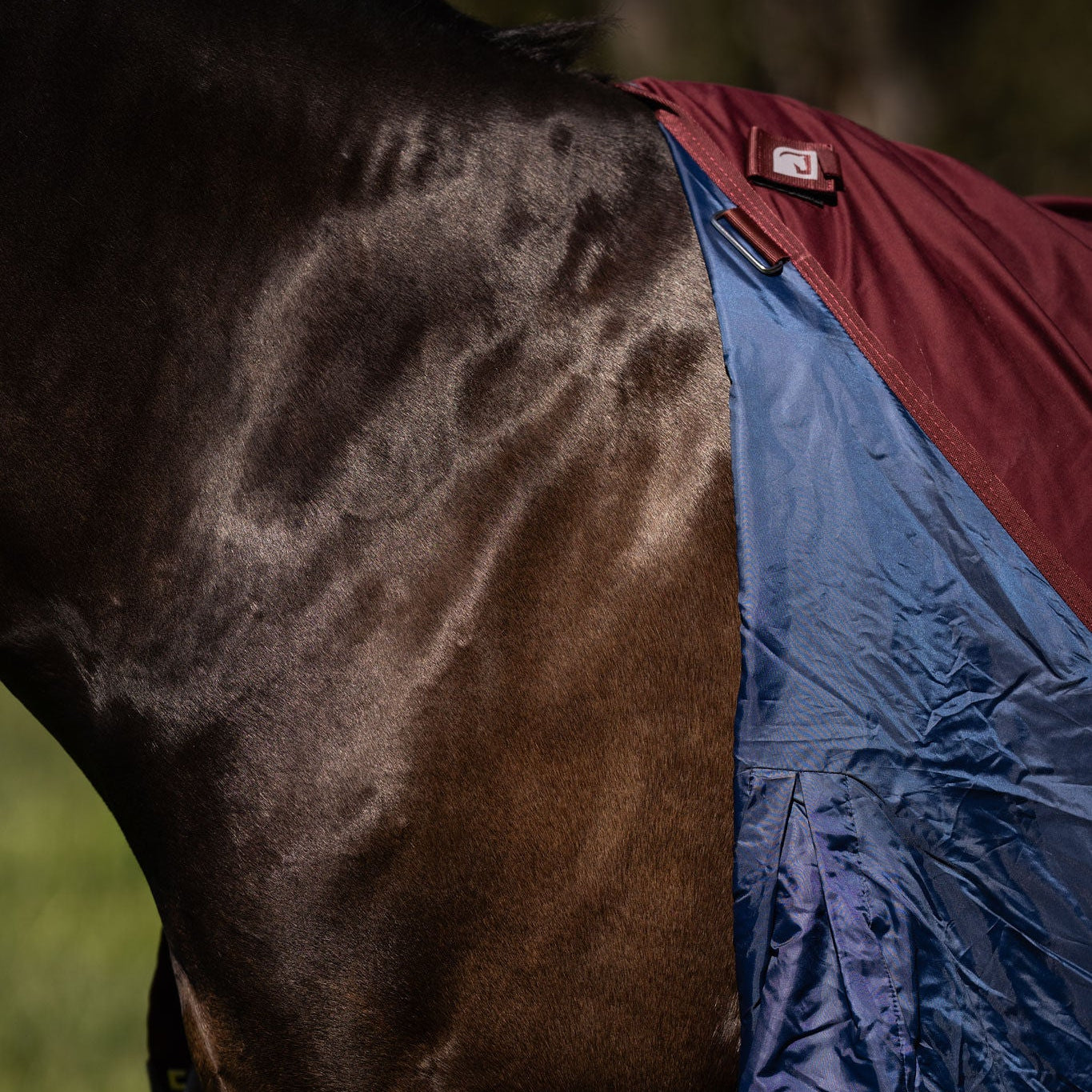 Field Safe Front closure for lightweight comfort and peace of mind when feeding with hay nets etc