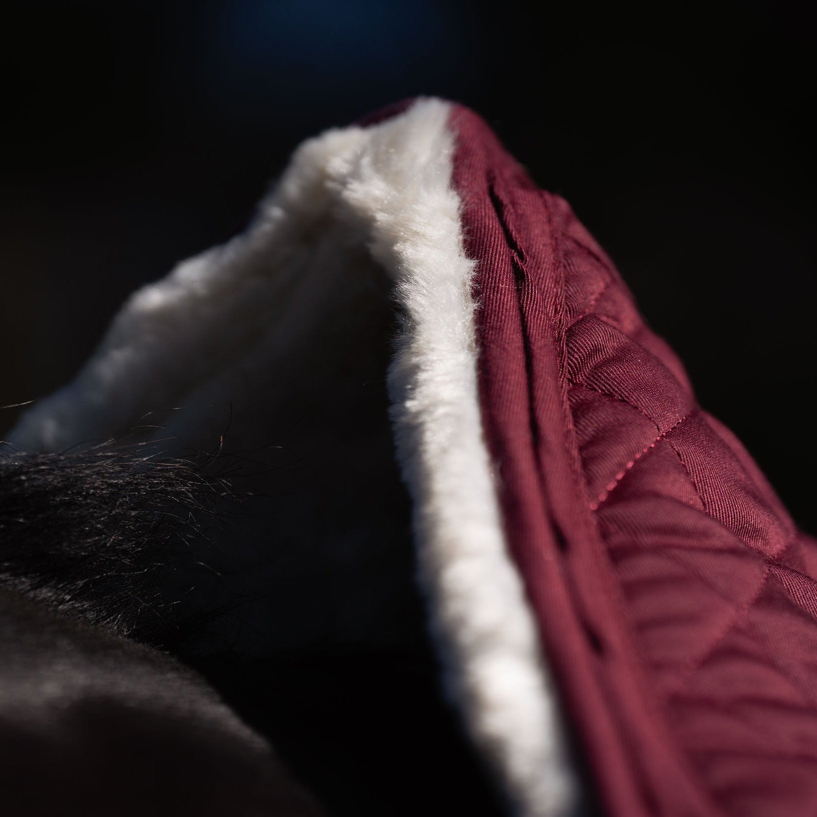 Our Performance Saddle Pad with Shims is designed to provide your horse with maximum comfort and support during their rides. Crafted with high-quality materials and thoughtful features, this saddle pad offers a range of benefits that will enhance your horse's well-being. The faux fur lining gives great softness for even the most sensitive of horses, the wide channel for the spine allows lots of room and removes potential for pressure, plus front and rear shim pockets to adjust as you need to (2 shims per pocket are included).