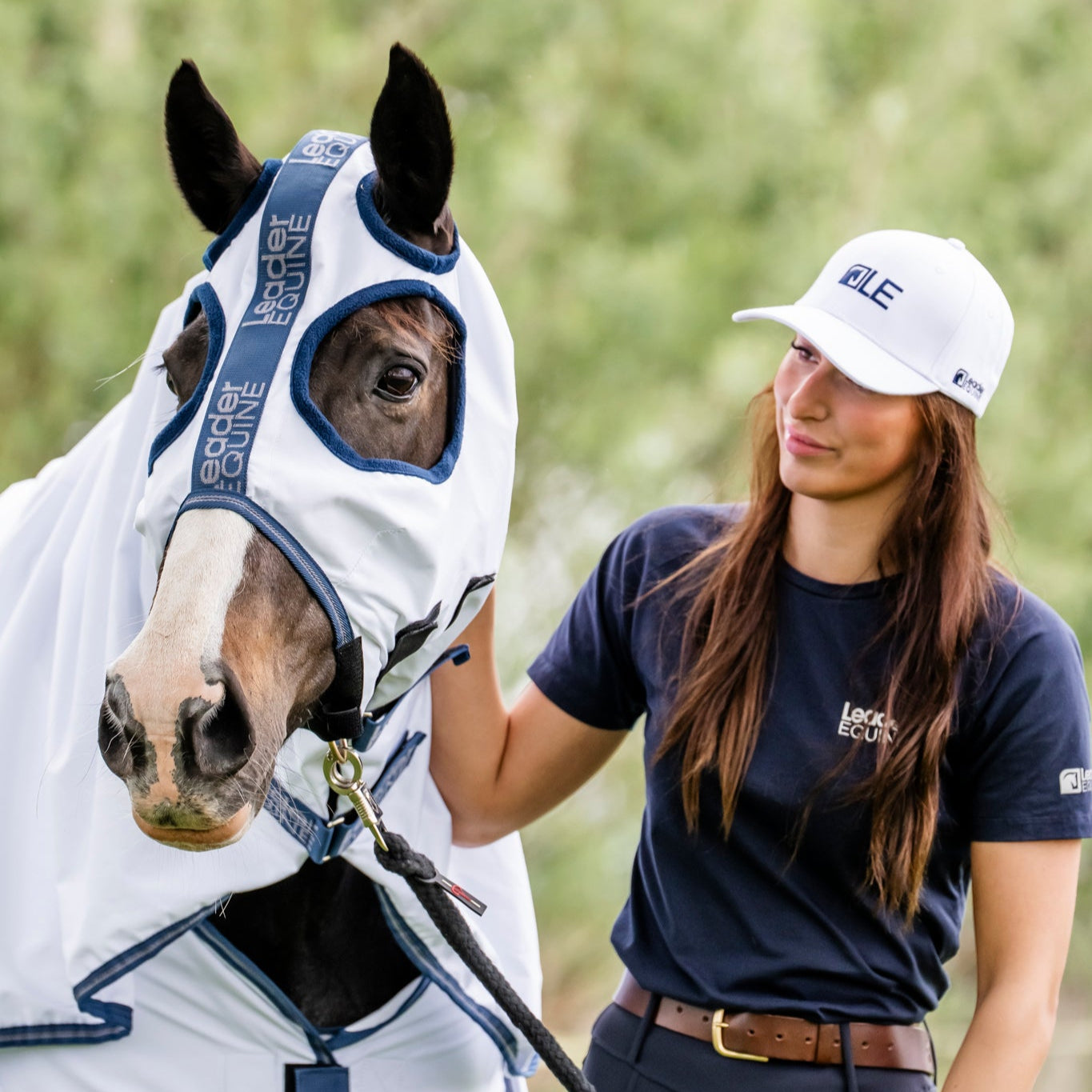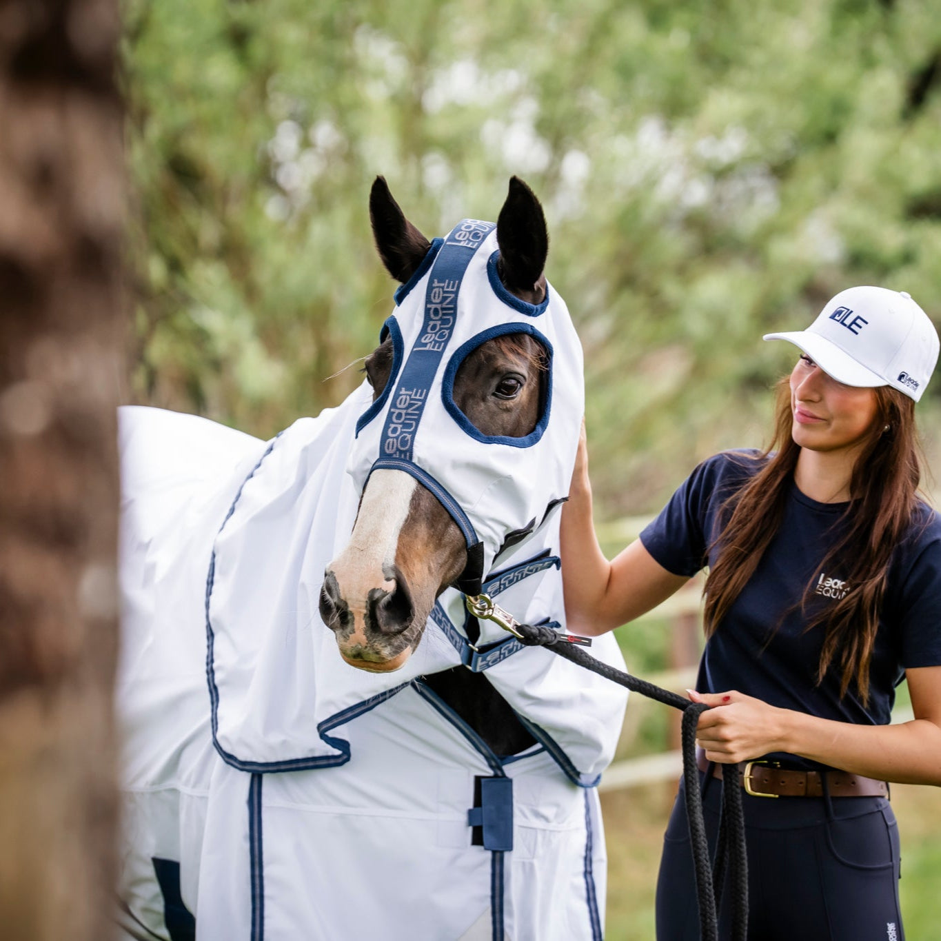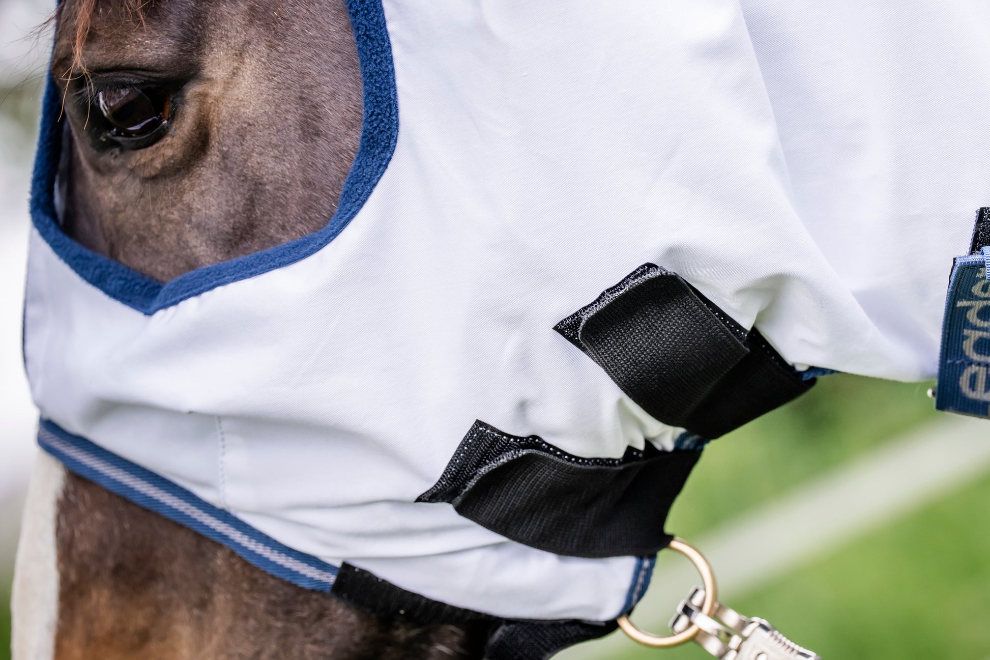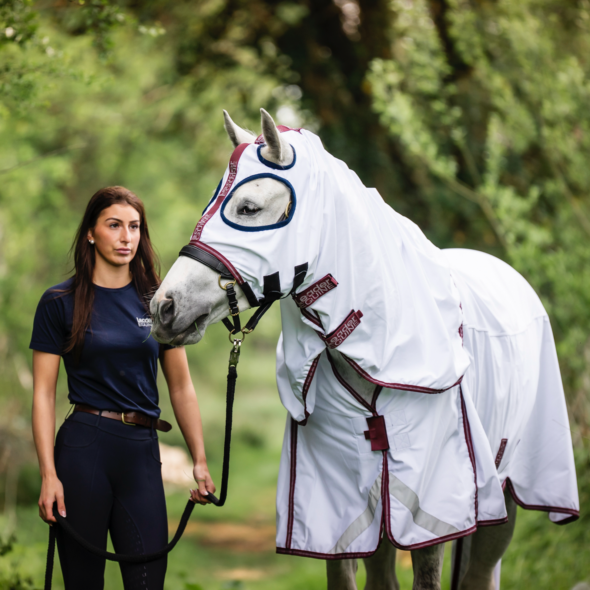 Full hood to match with our LE Fieldsafe Summer Sheet in White with navy or in White with pomegranate! Can also be attached to our LE Breeze Summer Sheet.