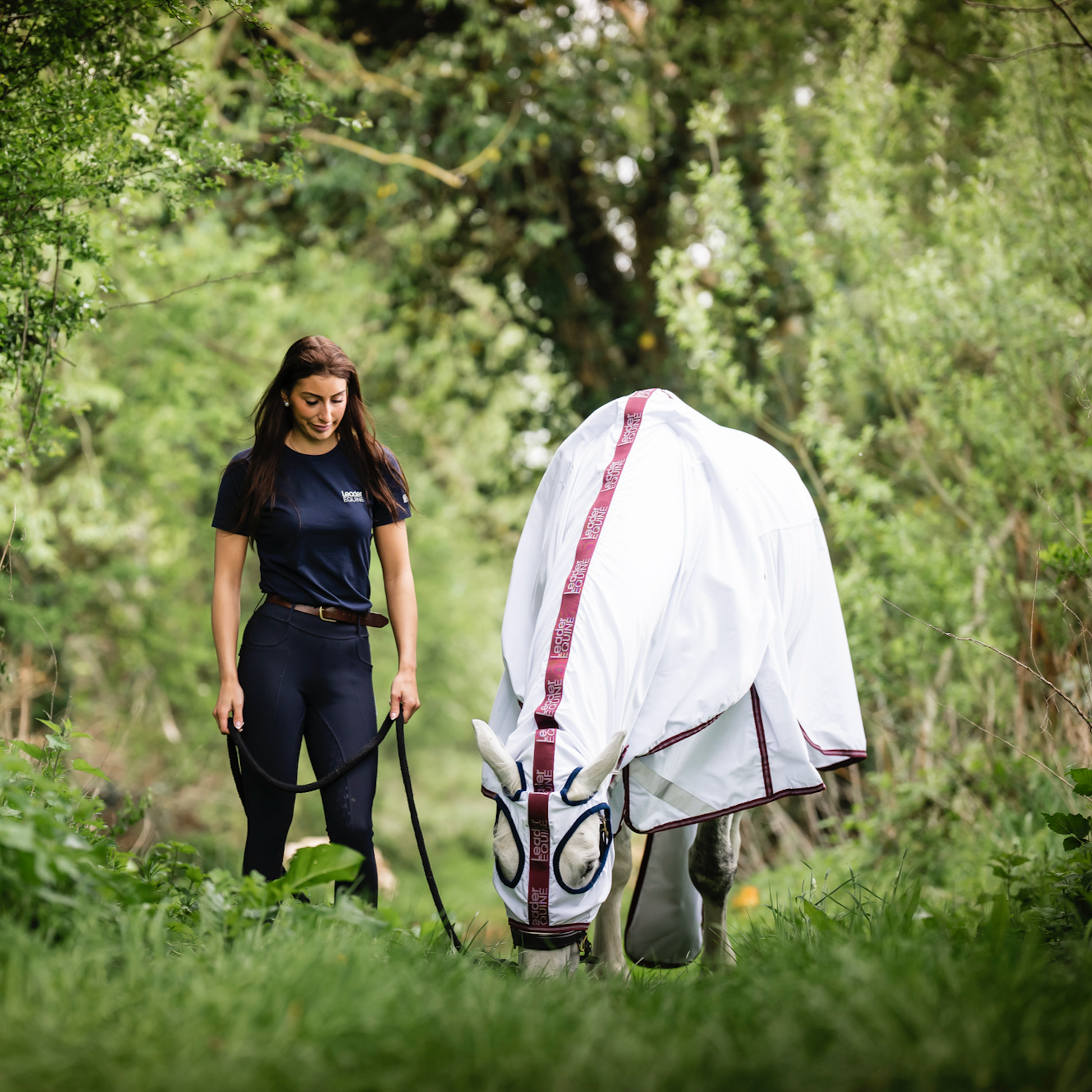 Intended for use in stables, yards and shows etc for protecting the coat, your plaits and providing additional relief from insects.