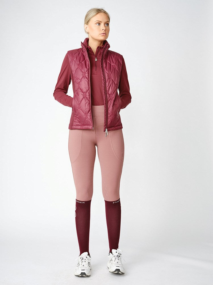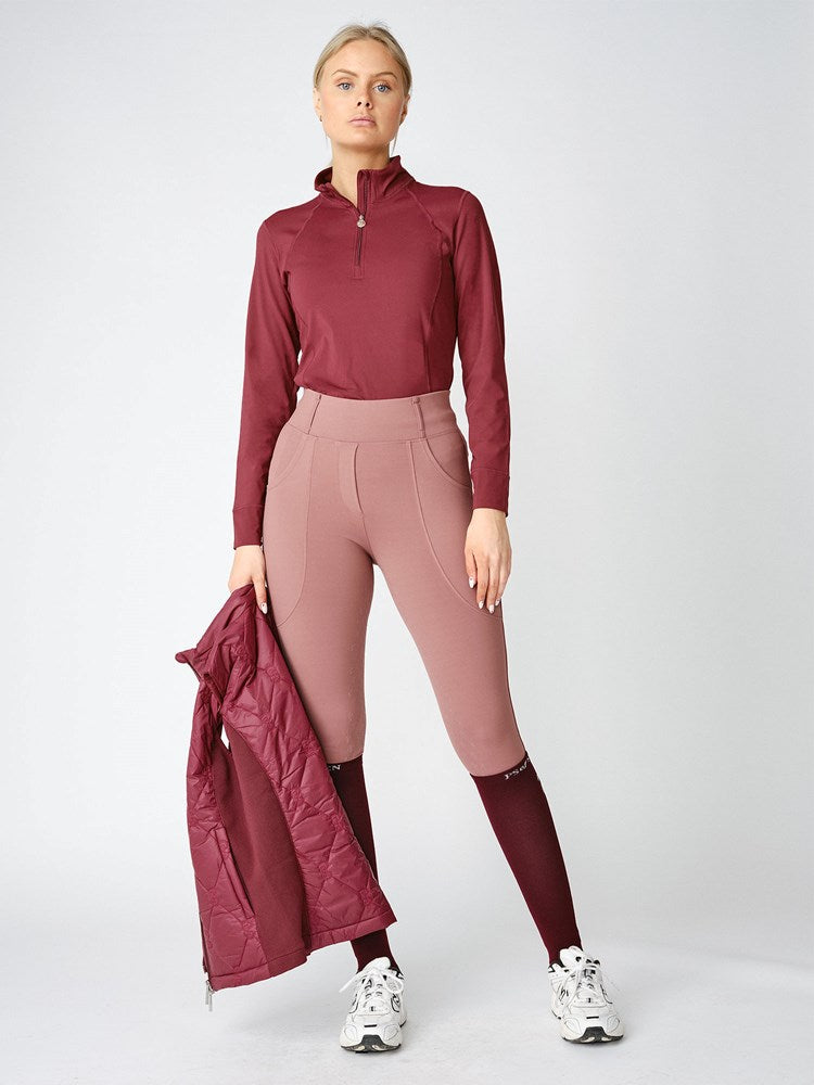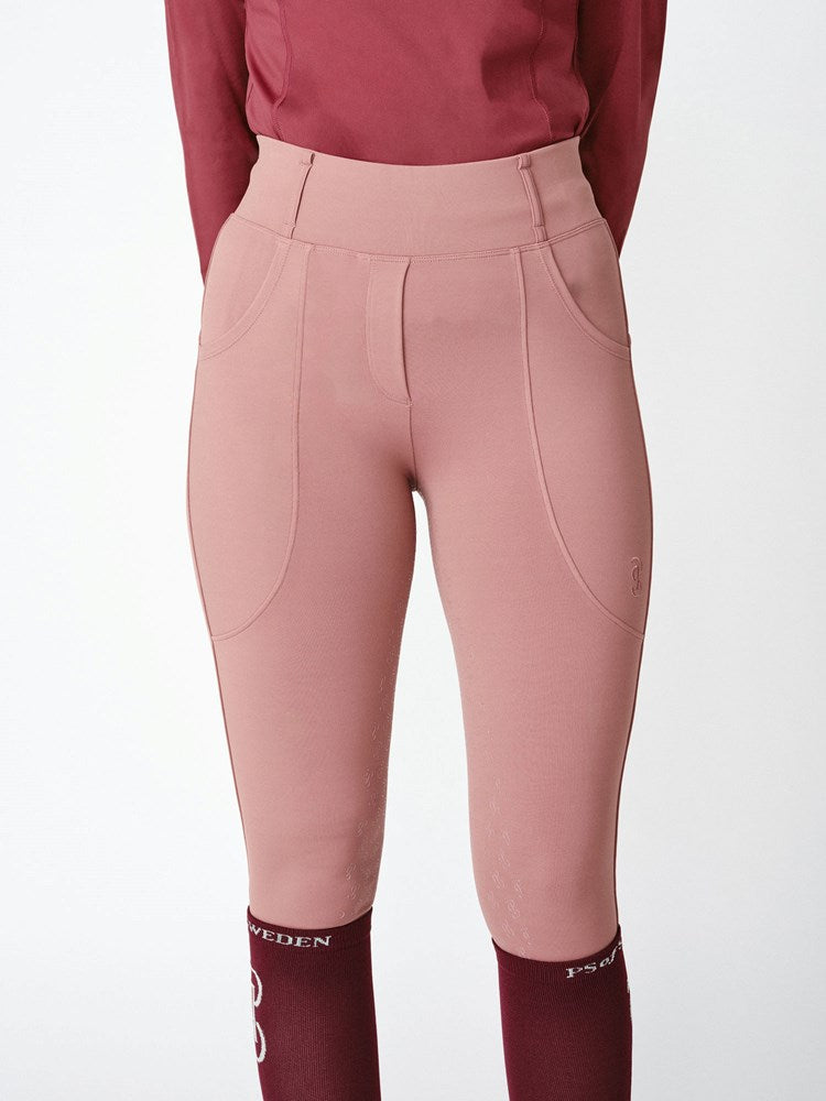 Full grip riding tights with a hugging yet fully flexible fit. The stretchy material combined with the tights' high waist style ensures comfortability - while functionality and style is secured thanks to details such as belt loops, decorative pocket lids and two spacious phone pockets. The perfect hybrid between breeches and tights.
