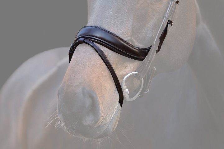 The upswept design of the Paladin noseband allows clearance for the cheekbones while avoiding pressure on the molars and sensitive nerves. It is fastened via an anatomically padded pullback, attached to D rings which offer more freedom of the jaw.