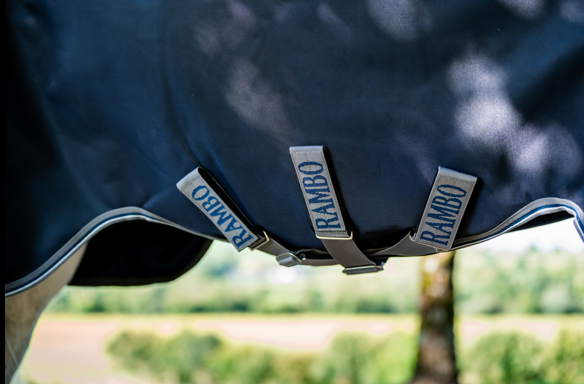 Other details you'll both love include a wipe-clean tail cord, reflective strips, three crossed removable surcingle straps incorporating the Rambo® Safety Surcingle System and anti-bacterial, anti-static, shine-enhancing embossed lining.