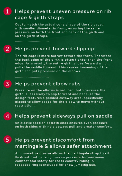 The unique design of the Micklem? girth provides the optimum pressure distribution around the rib cage and equal pressure on the girth straps.